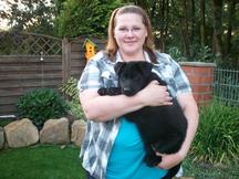 Scelly mit 6 Monaten. Eine Hündin mit tollen Umweltverhalten. Scelly 8 Wochen alt mit Yvonne.